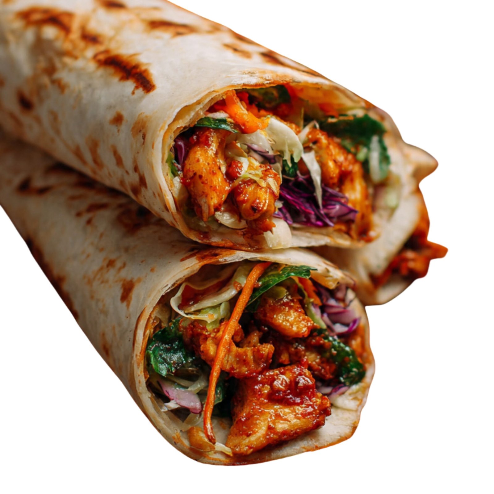 Fried chicken tossed in homemade Schezwan sauce wrapped in homemade paratha with inhouse sauces and dressing